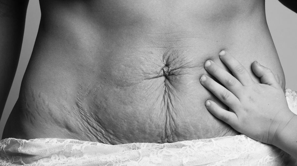 — большое количество растяжек, шрамов, различной давности и размера;