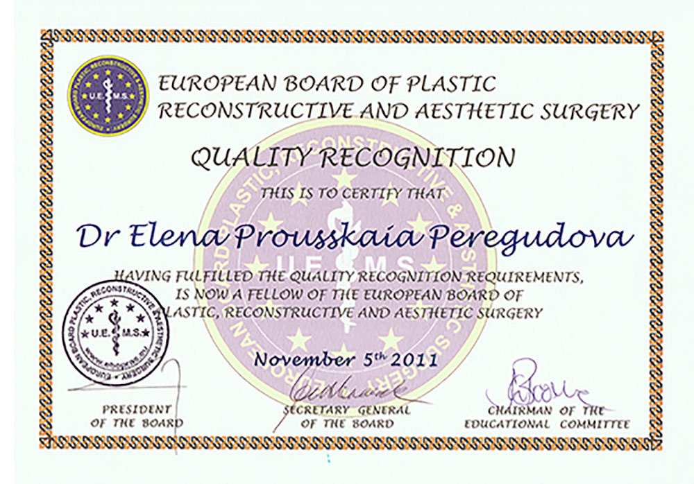 Пластический, реконструктивный хирург и микрохирург высшей международной категории, с 20-летним опытом работы в клиниках Испании, Англии и России, обладает многочисленными национальными и международными премиями Великобритании и Испании. Ее частная практика в основном проходит во всемирно известном Хирургическом центре McIndoe в Юго-Восточной Англии, Роял Танбридж Уэллсе, Ист-Гринстеде, Кентербери, Суссексе, Кенте и Лондоне. Елена так же работает в Palma de Mallorca в Quironsalud Hospital Palmaplanas