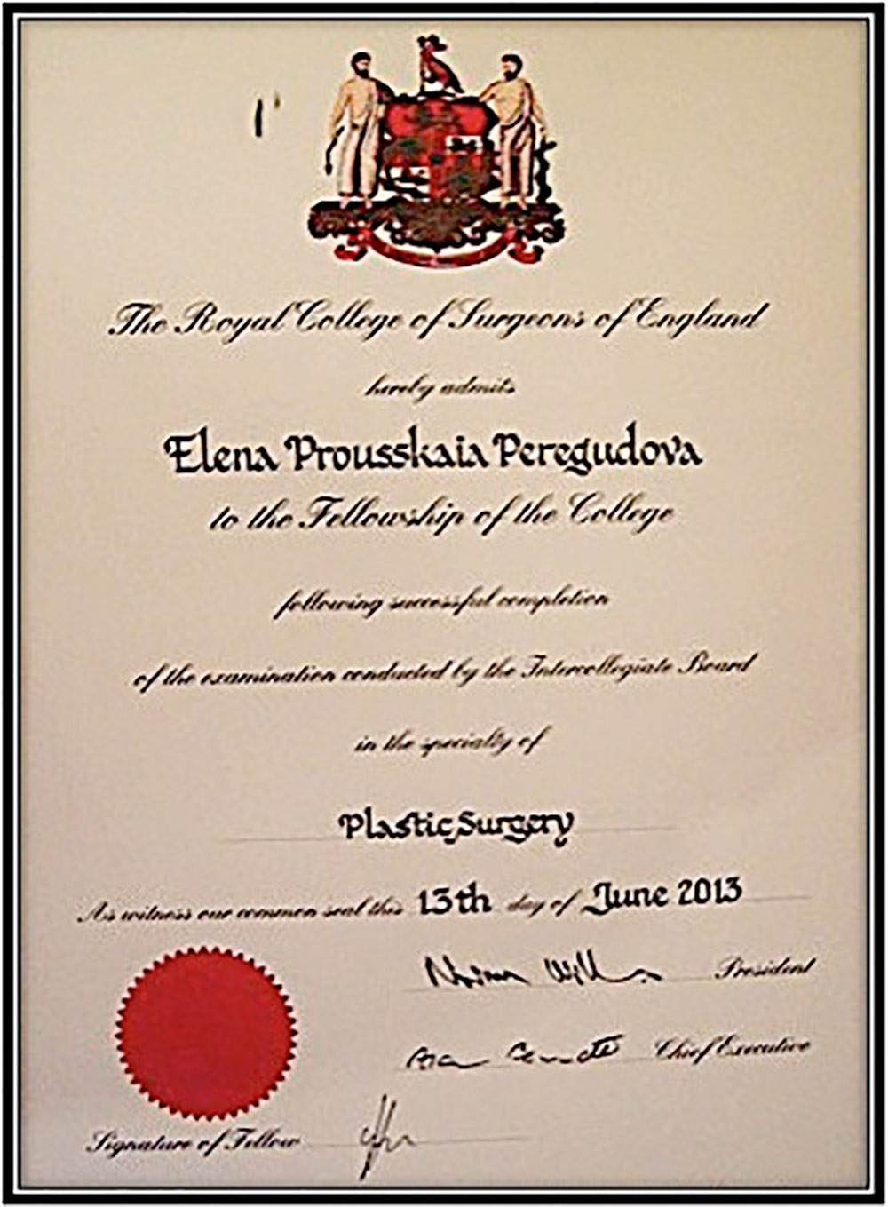 После восьми лет обучения в области пластической и реконструктивной хирургии успешно окончила одну из наиболее престижных аспирантур в Великобритании в области микрохирургической реконструкции груди и онкопластической хирургии груди. В это время также практиковала в качестве хирурга в госпиталях Guy’s и St Thomas’ в Лондоне, Университетской больнице Манчестера, Больнице Брумфилд в Челмсфорде и Госпитале Королевы Виктории в Ист-Гринстеде.